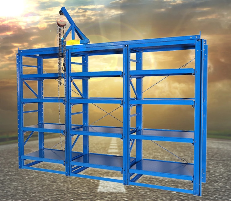 模具貨架主要由槽鋼立柱與滑槽、重型層板組合而成,結構穩定 可靠 。模具貨架可拆卸組裝,承.